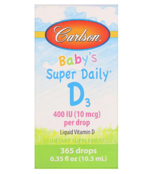 Витамин D3 играет важную роль в общем здоровье, но не каждый получает достаточно от солнца. Super Daily D3 от Carlson Baby обеспечивает витамин D3 безопасным и удобным способом. Одна капля Super Daily D3 от Carlson Baby содержит 400 МЕ (10 мкг) концентрированного жидкого витамина D3, рекомендуемой дозы Американской академии педиатрии.
